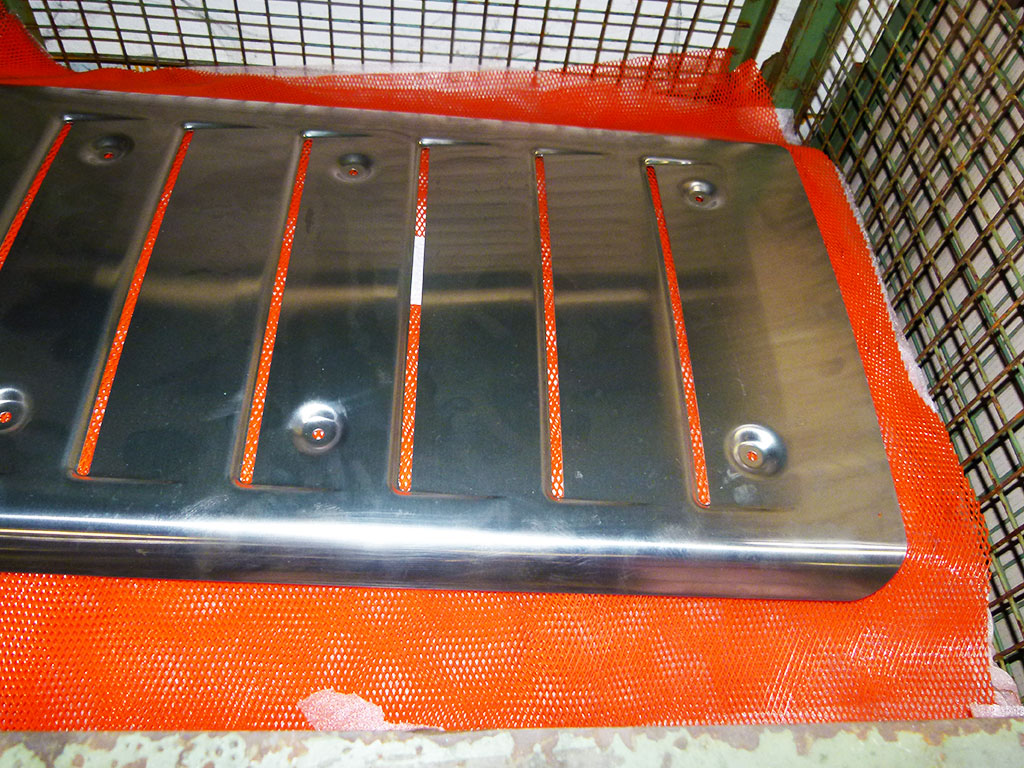 Die Gittermatten besitzen eine hohe Druckfestigkeit. Ihre Oberfläche ist sehr geschmeidig. Legt man die Matten zwischen eng gepackte Teile, schützen sie diese gegen Beschädigungen.